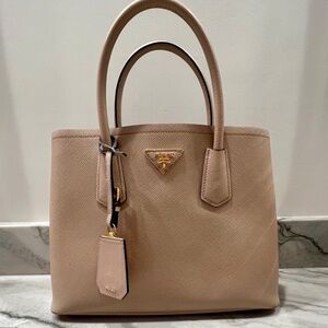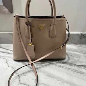 Prada Saffiano Cuir Medium Double Bag Cammeo