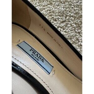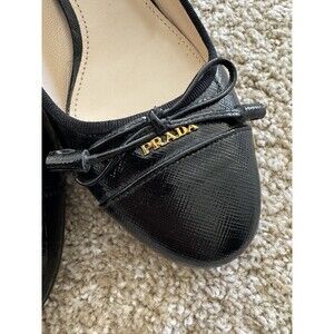 Prada Saffiano Leather Black & Gold Heels with Bow – Size 40.5 (Fits US 8–8.5)