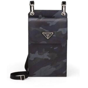 PRADA Saffiano Leather Phone Case With Webbing Lanyard Camouflage Print NEW