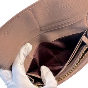 Add timeless elegance to your collection with this Prada Continental Wallet, crafted in iconic Saffiano leather in a sophisticated mauve hue. The muted pink-brown tone pairs seamlessly with both classic and contemporary looks, making it a versatile choice for everyday luxury.