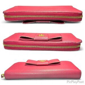 Prada Saffiano Leather Continental Zip Wallet with Bow - Peonia/Pink