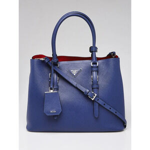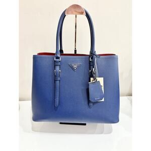 Prada Saffiano Leather Double Handle Tote Handbag Inchiostro/Red
