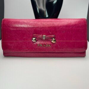 Prada Saffiano Leather Long Wallet w/ Bow - Peonia - Preowned