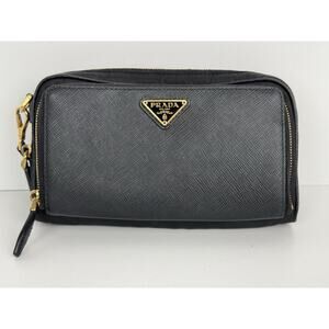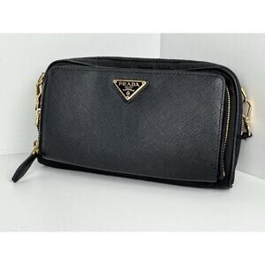 Prada Saffiano Leather Mini Double Zip Crossbody Black B-6