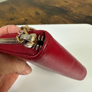 Prada Saffiano Leather Zip Around Coin Purse Wallet Red