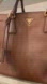 Authentic Prada Saffiano Lux very chic tote is made of calfskin leather in brown (caramel) color (Palissandro) with gold hardware. Leather Tote Top Handle Bag BN1786