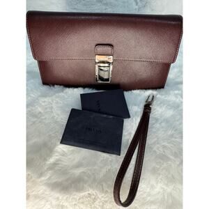 Prada Saffiano Lux Leather Wristlet Clutch 💼✨