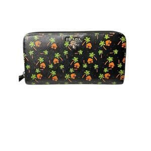 Prada Saffiano Palm Tree Print Zip Around Wallet