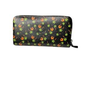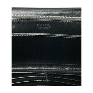 This is a pre-owned Prada Saffiano Zip Around Wallet in good condition. It features a vibrant palm tree print on the exterior. The wallet has been gently used and shows some signs of wear. Please refer to the images for more details. The zip-around closure keeps your essentials secure, while the interior offers multiple card slots, compartments, and a zip coin pocket. It's a stylish and practical accessory for any Prada lover! Don't miss out on the opportunity to own this beautiful Prada wallet!