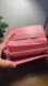 Double snaps with a back zipper pocket and interior zipper coin pocket.