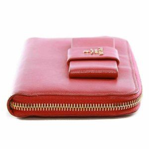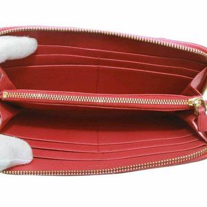 This is an authentic Prada Saffiano around Wallet in red. This is a chic clutch wallet that is finely crafted of luxurious Saffiano cross-grain leather. The 3/4 wrap around zipper opens to a leather compact interior of zipper compartments as well as card slots and patch pockets. This is an excellent wallet that is practical and chic for everyday use, with the sophisticated style, from Prada.