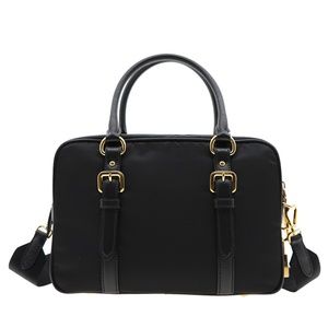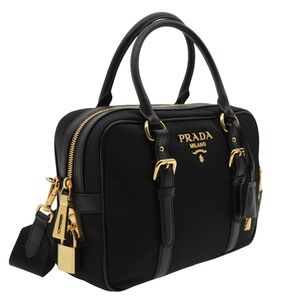 Prada Satchel Shoulder Bag Black Nylon & Saffiano Leather With Lock And Key New