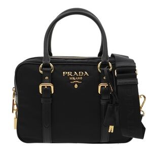 Prada Satchel Shoulder Bag Black Nylon & Saffiano Leather With Lock And Key New