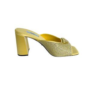 Prada Satin Crystal 1XX642 Ananas Yellow Slide Heel Mules Sandals, 36 & 38