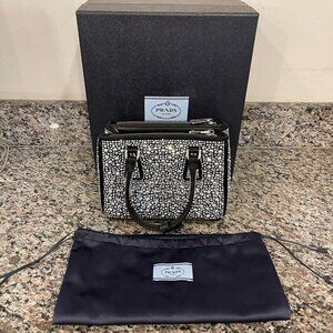 Prada Satin Crystal Mini Galleria Double Zip Tote Metal in Box SPB-JB 334867