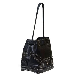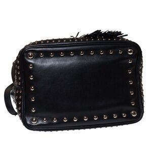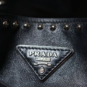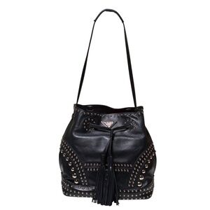 Prada Secchiello Soft Calf Black Leather Bucket Bag with Studs