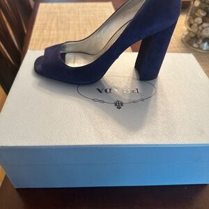 Prada shoes size is 6.5 us, navy blue , suede material.