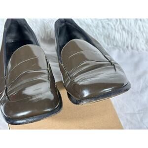 Prada Shoes Womens Size 40 US 10 Brown Patent Leather Loafers Block Heel Italy