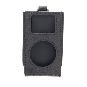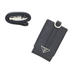 Add a touch of elegance to your everyday look with this Prada Signature Black Leather Handbag Accessory Charm. This mini handbag charm features a solid pattern and is made of high-quality saffiano leather in black color. The charm is lightweight and comes with a detachable strap, key holder, bag charm, and original box accessories. It has a clasp closure and silver hardware material. The nylon handle/strap material adds to its durability. This vintage Ipod case model is perfect for casual occasions and is sure to make a statement.