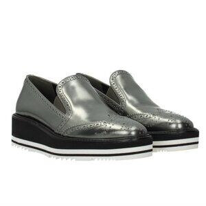 Prada Silver Metallic Slip On Platform Oxford Wingtip Loafers