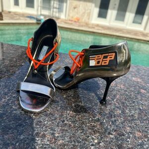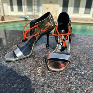 Prada Silver and Orange Heels
