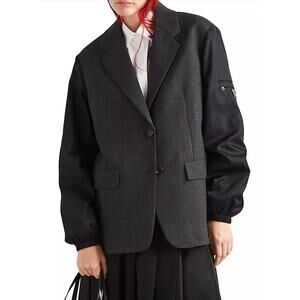 Prada Single-Breasted Wool And Re-Nylon Jacket 2-Button Elasticized Cuff Retail $4700