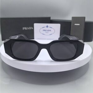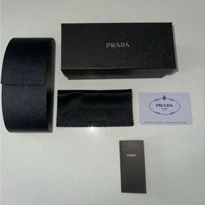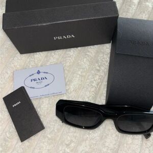 ** Used Elegant Prada sunglasses with a modern design. Includes branded case and authenticity card.