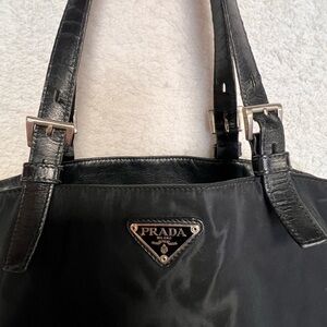 Chic and versatile Prada tote. Luxurious black design. Ideal for everyday elegance. Missing one of the feet cover but the bag is not broken. Please check all photos for flaws.