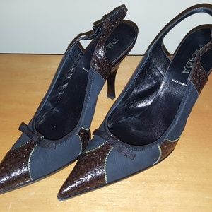 Black Women's Prada Slingback heel with Brown Leather Croc Toe and Strap