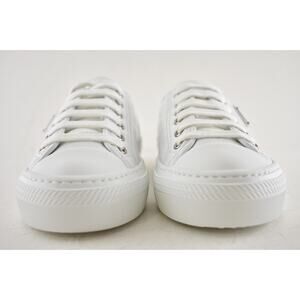 Prada Smash Naplak White Patent Logo Lace Up Flat Low Top Trainer Sneaker 40