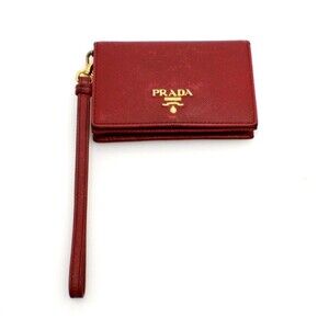 Prada Soffiano Red Leather Credit Card Holder With Hand Strap