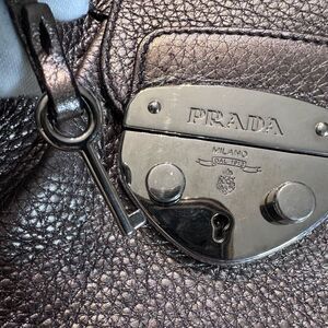 Prada Sound Lock Shoulder Bag Metallic Silver