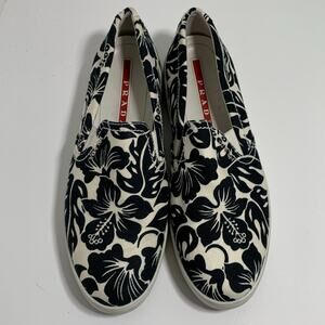 Prada Sport 39 Womens Slip On Round Toe Tropical Canvas Sneaker