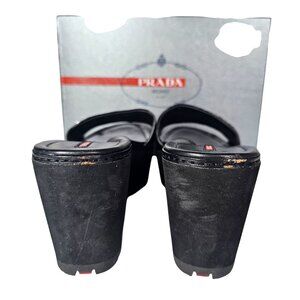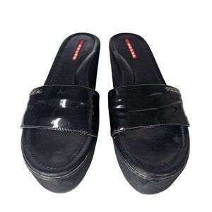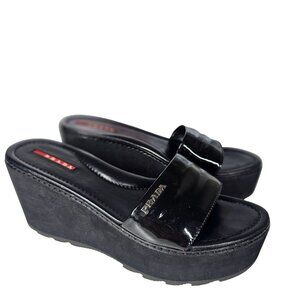 Prada Sport Black Patent Leather Platform Wedge Slides Sandals Women's 39.5/US9.