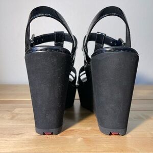Prada Sport Black Patent Leather Wedge Platform Ankle Strap Sandals Size 39