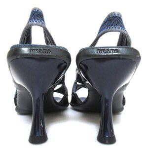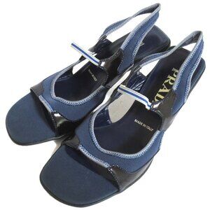 Prada Sport rare FW 1999 black leather and blue slingback sandals.