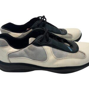 Prada Sport White/Grey Patent Leather Mesh Americas Cup Low Top Trainer Sneakers