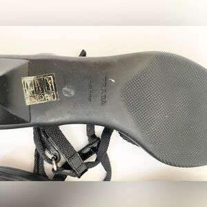 Prada Sport Y2K Black Leather Nylon Logo T-strap Kitten Low Heel Sandals EU 39