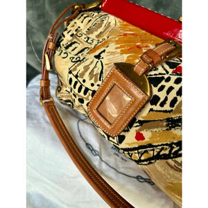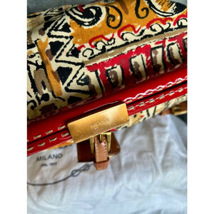Gorgeous Prada cloth bag. Great condition! Small area of discoloration on bottom and some pen marks on the inside - see pics. I have not tried to remove these marks. Might be easy fix.