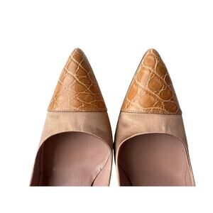Prada Stiletto Pump in Satin & Beige Embossed Leather Size 38.5