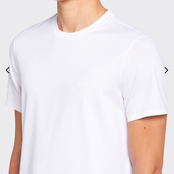 The Prada T-shirt, an essential garment of the brand, embodies the luxury of simplicity that becomes an attitude and search to reinvent the basics and propose new meanings. This version in cotton is defined by its slim fit that emphasizes the silhouette.