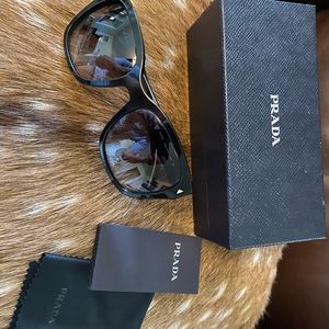 Mint condition Prada sunglasses. Worn twice. They come with the case, the box that the case came in, original cleaning cloth and authenticity pamphlet. No scratches on the lenses.