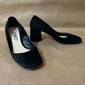 Prada Suede 65mm Round Block Heel Pumps Square Toe Classic Size 7.5 (EU 37.5)