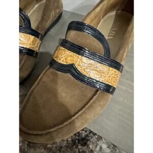 Prada Suede & Alligator/Crocodile Trim Loafers Shoes Size 10