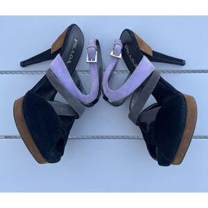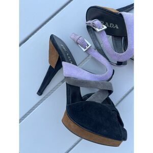Prada Suede Color Block Put Out Heeled Sandals - Size 36.5/ US 5.5 - Multic