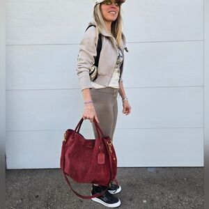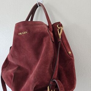 Prada Suede Double Handle Shopping Tote Bag In Bubgundy Color