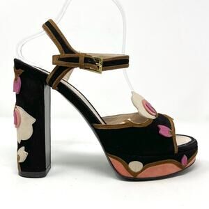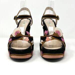Prada Suede Floral Appliqué Platform Sandals – Size 39