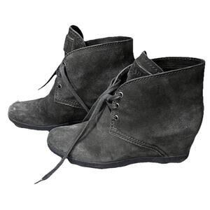 Prada Suede Leather Wedge Ankle Boots Shoes Women's Size 37 EU/ 6.5 US Gray