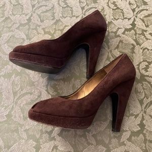 Prada Suede Peep Toe Pumps