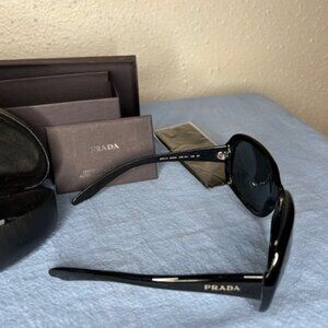 Black Prada sunglasses; comes with hard cover, box, lens cover, Prada note